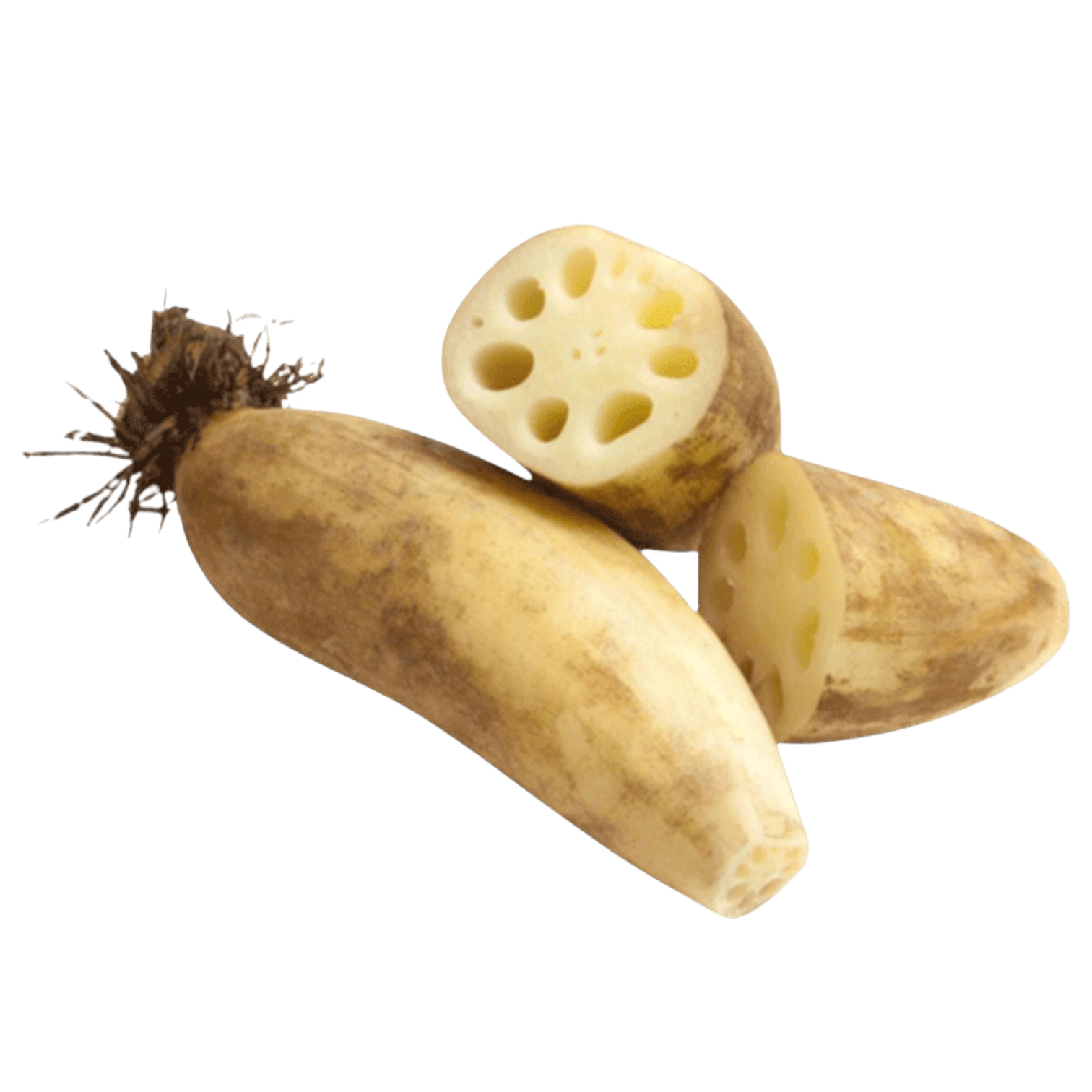 Lotus Root is an aquatic vegetable obtained from the rhizomes of the sacred lotus flower, widely used in Sri Lankan and Asian cuisine. This crunchy, mildly sweet vegetable features distinctive hollow chambers and a firm texture, making it suitable for various culinary applications.